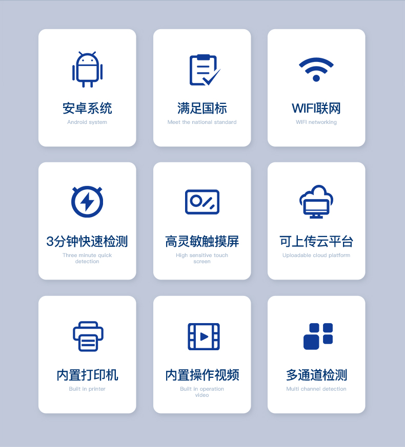 | 1)可加配語音報(bào)讀功能,人性化指導(dǎo)操作。 | 2)儀器可實(shí)現(xiàn)自身加熱功能。 | 3)可配置大容量鋰電池。 |